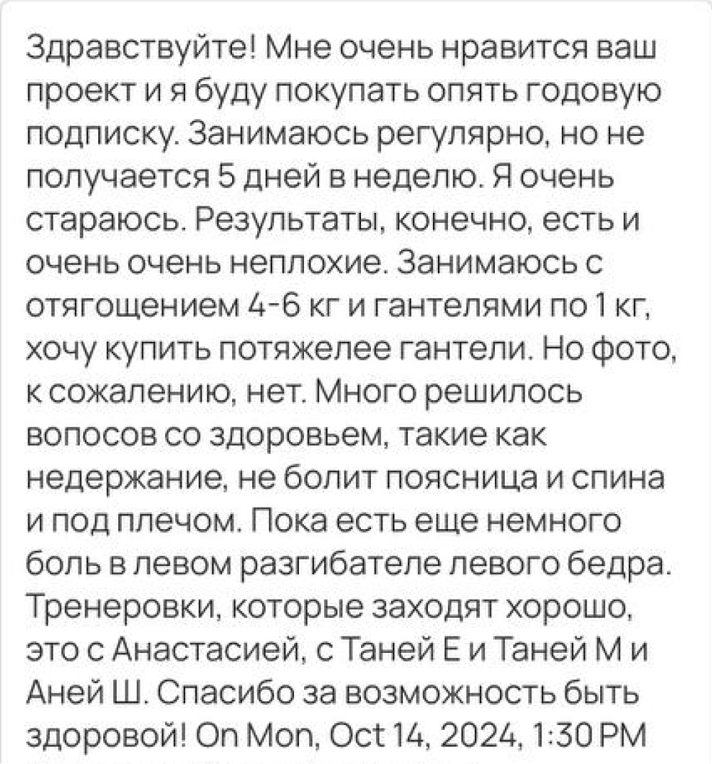ВНИМАНИЕ! При частичной оплате годовой подписки «Здоровое тело»+Клуб осознанных тренировок вам откроются тренировки ТОЛЬКО на 30 дней. После оплаты второй части вам откроется остальной доступ до 31.12.2025.