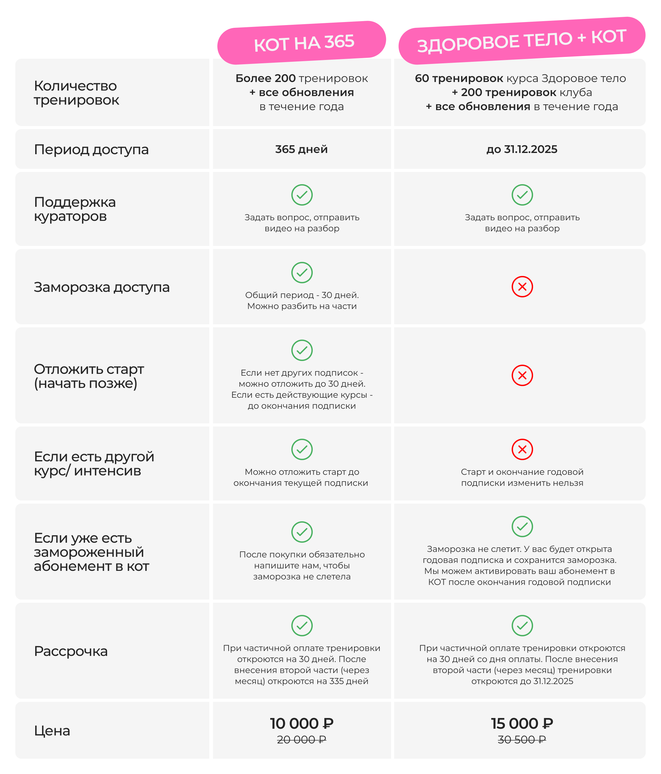 Если вы покупаете абонемент в КОТ на 365, то при частичной оплате тренировки откроются ТОЛЬКО на 30 дней. После оплаты второй части откроется остальной доступ на 335 дней.