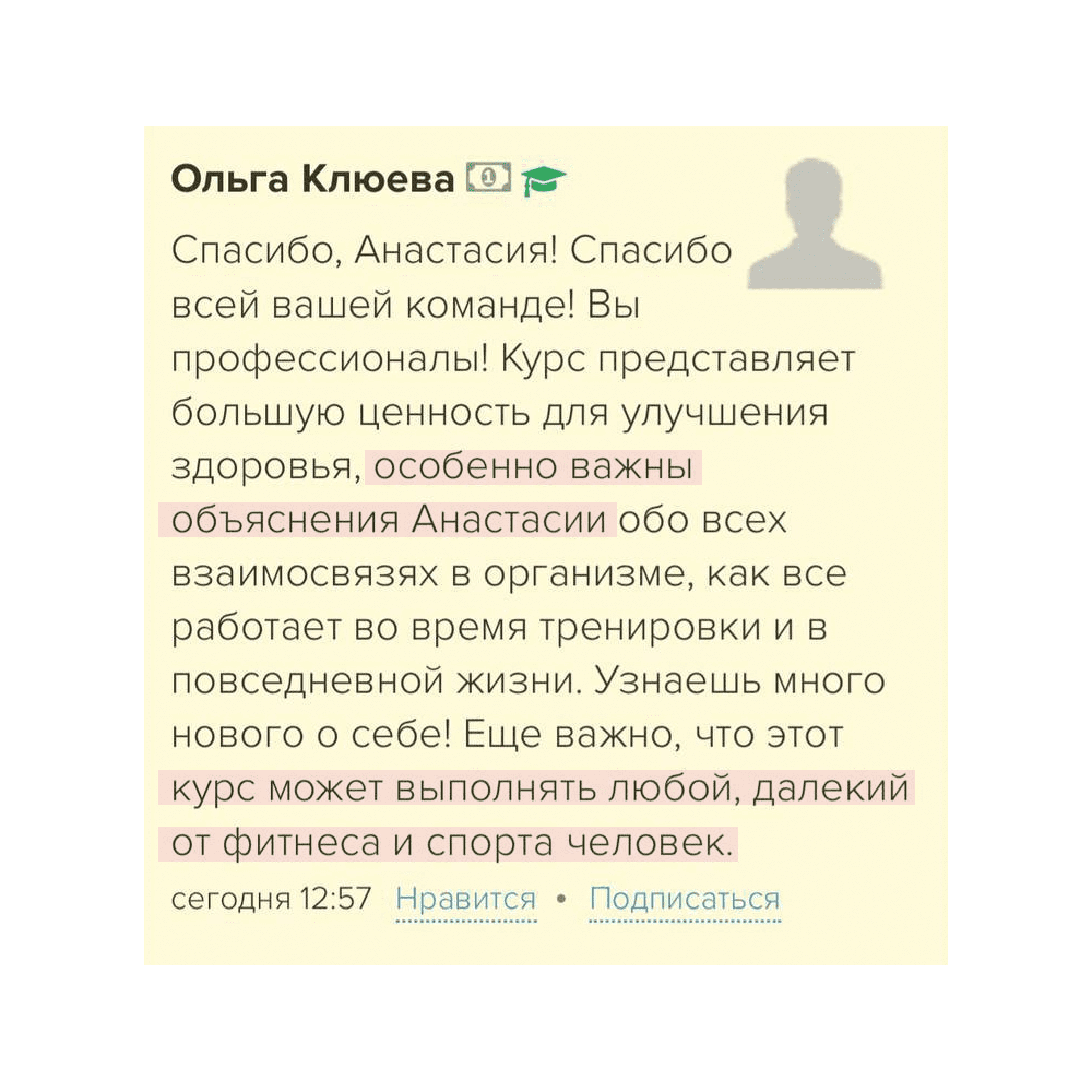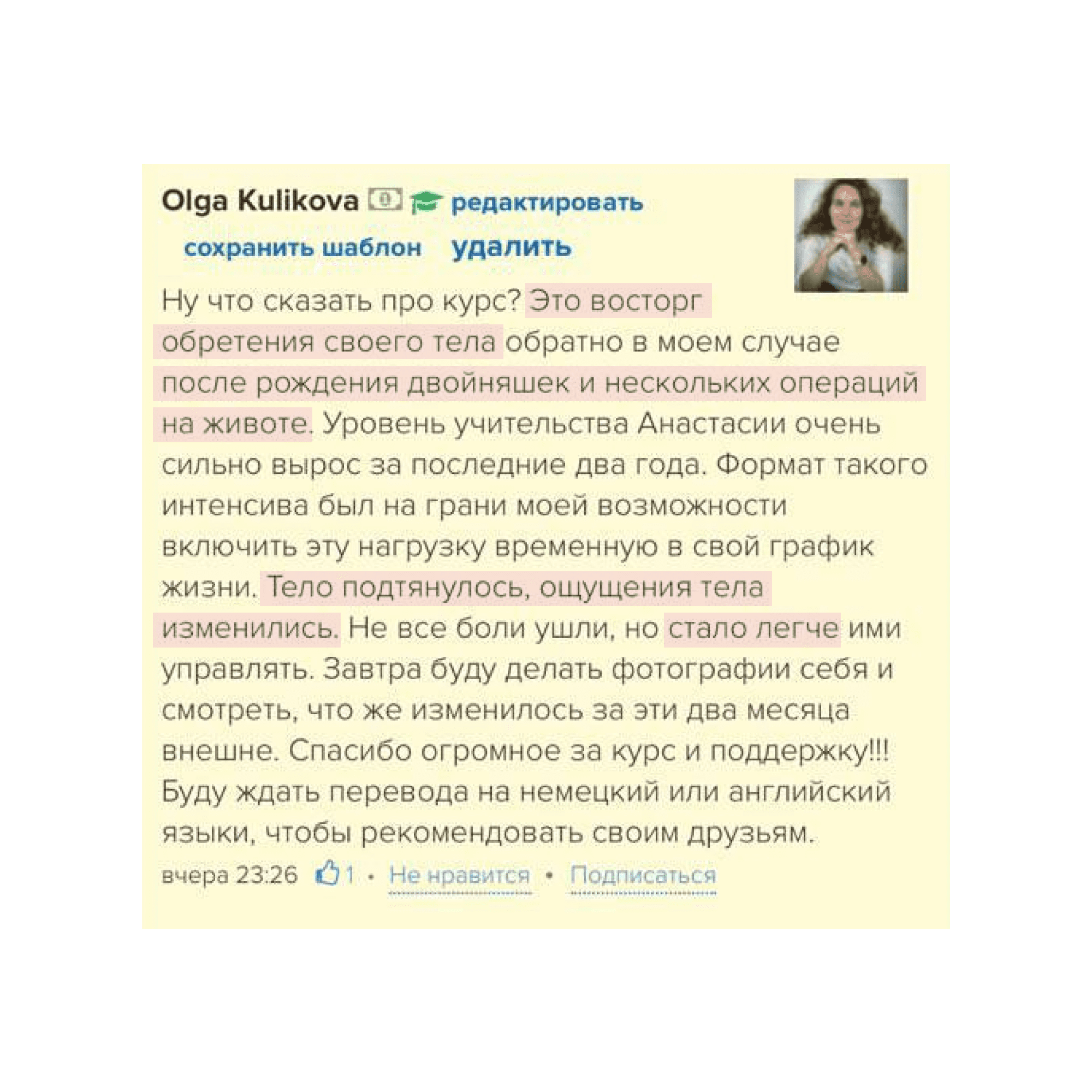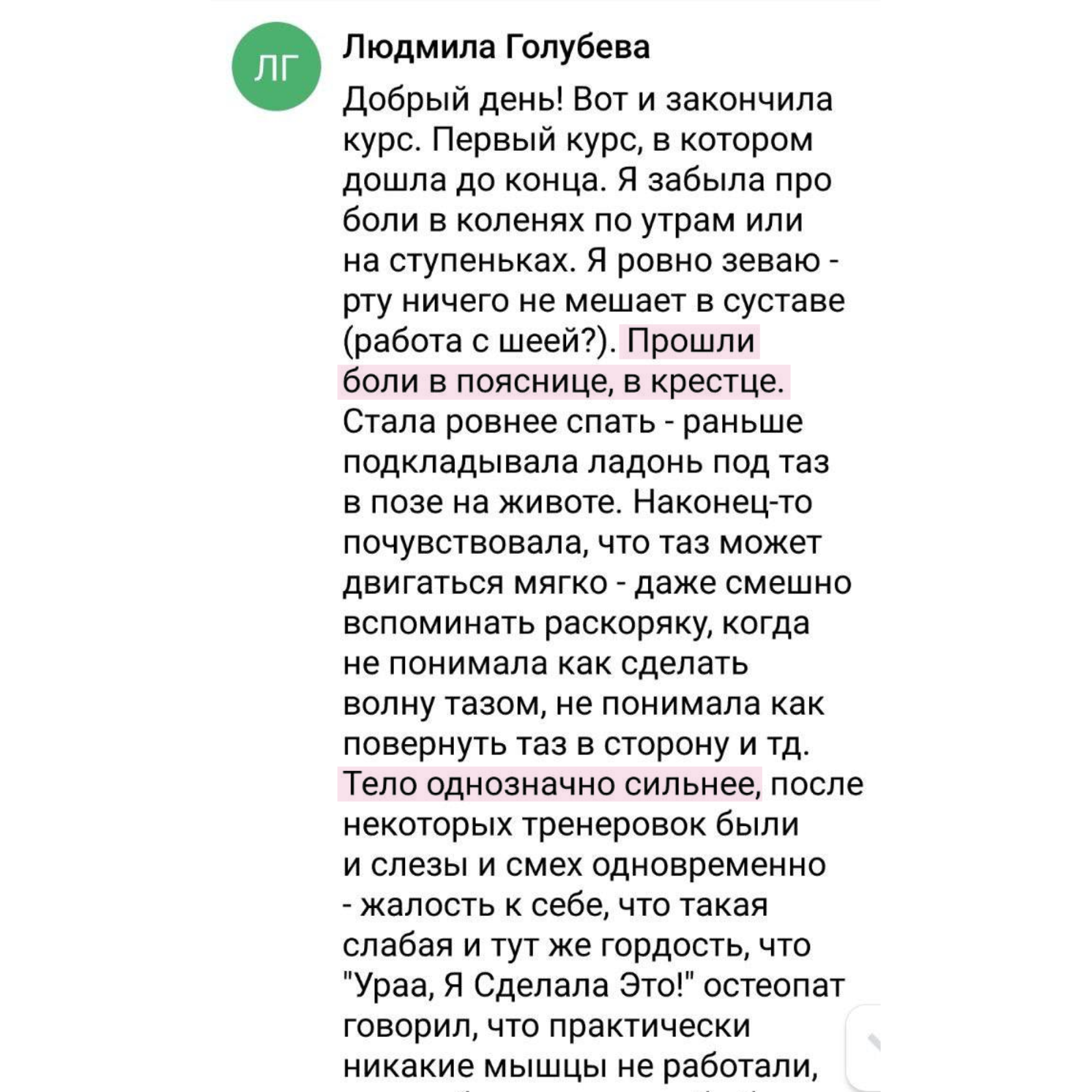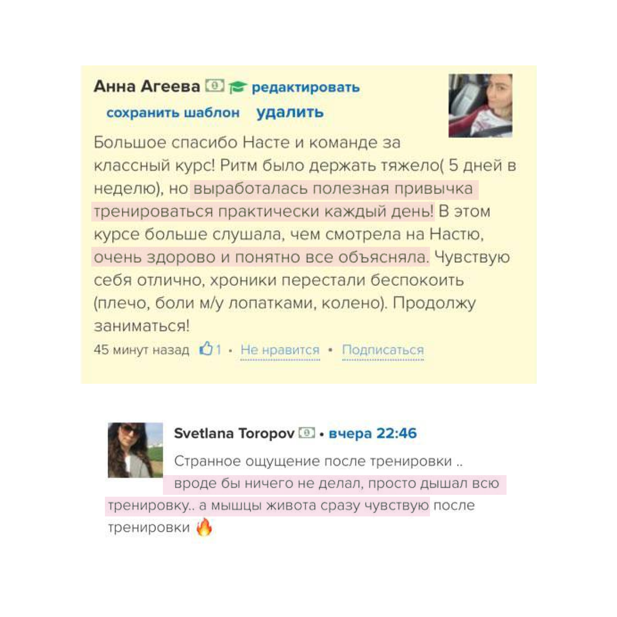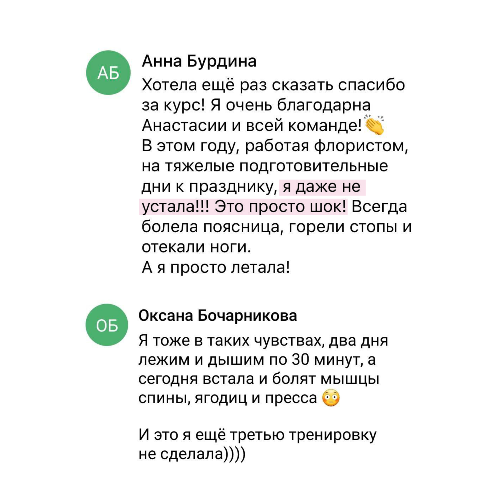 Поэтому сразу рекомендую ваш курс. Я сама тренируюсь с вами.