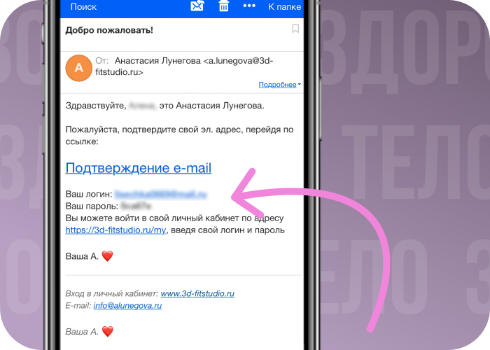 Получаете на email доступ к личному кабинету