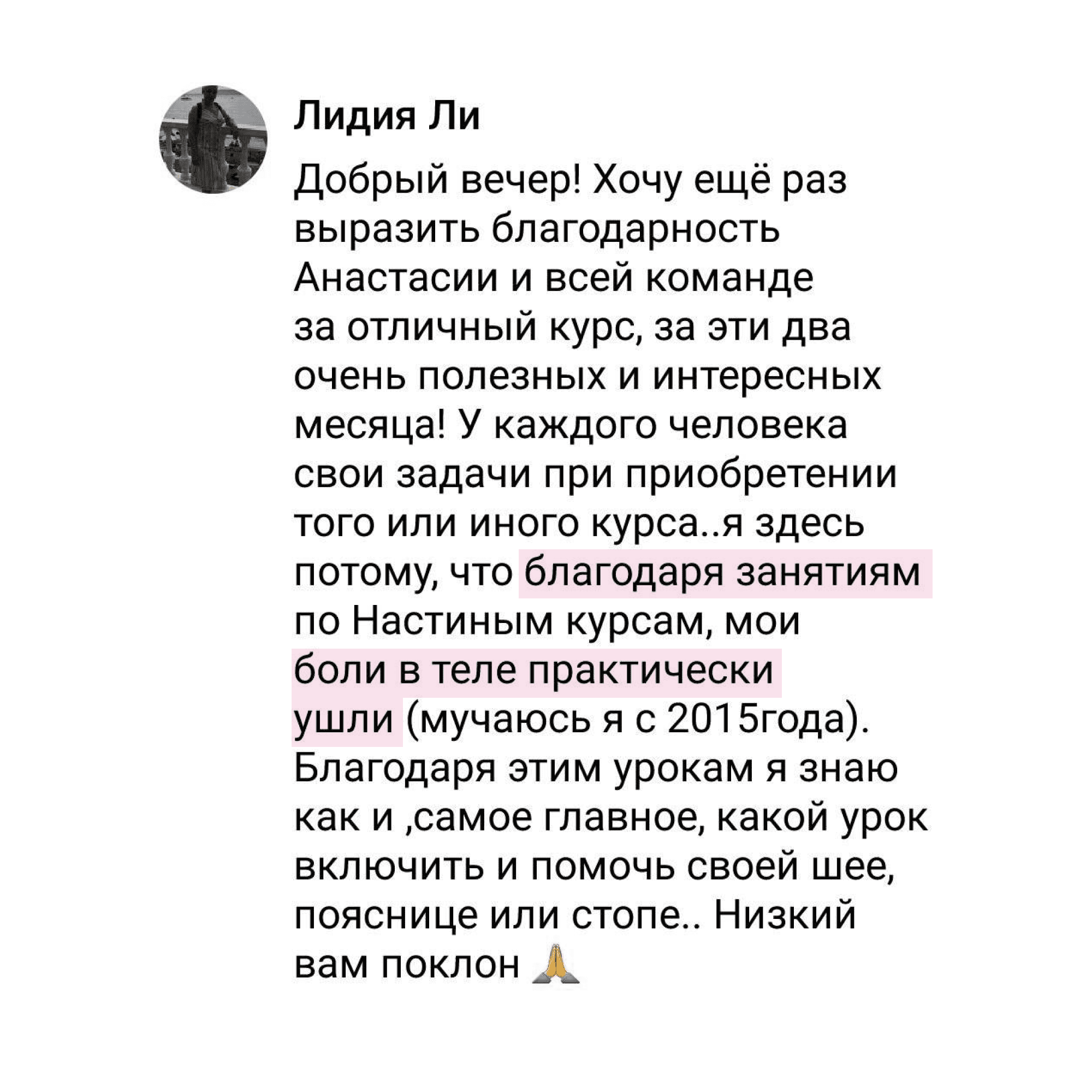 К курсам Анастасии Лунеговой я изначально обратилась как обычный подписчик, желая поправить свое здоровье.