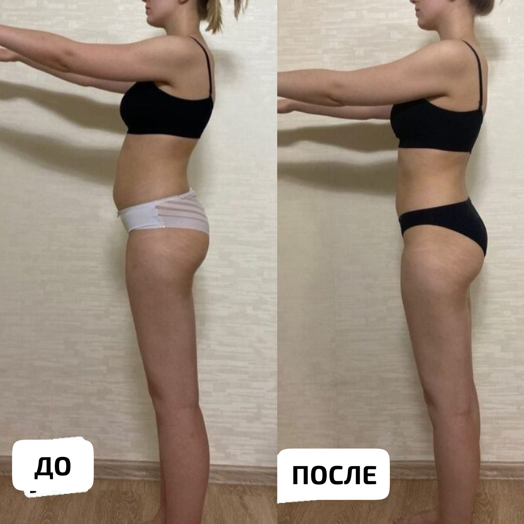 Подтянутый живот за счет изменения положения таза и грудной клетки